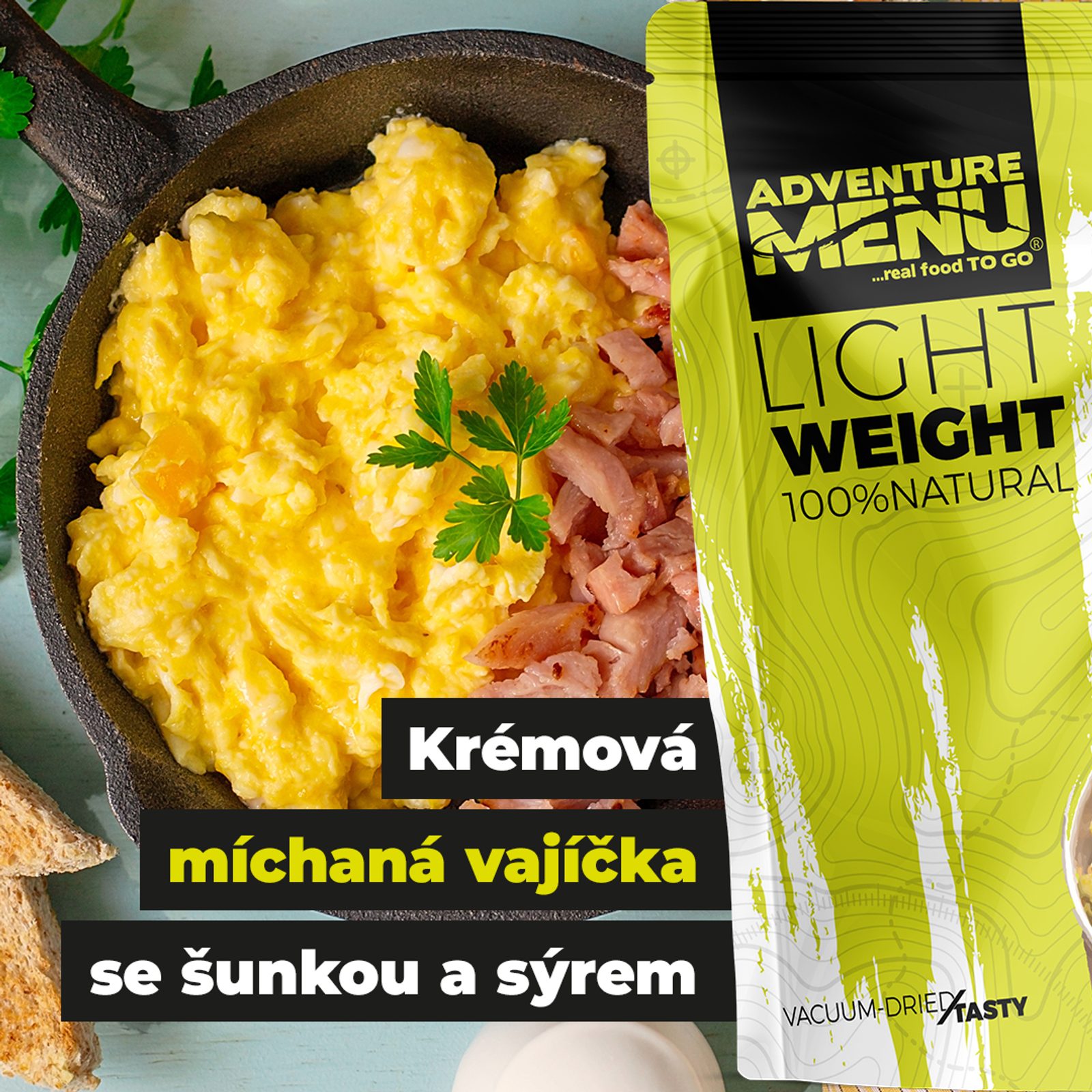 Od základu poctivě uvařené jídlo ze 100% přírodních surovin, které následně sušíme mrazem pomocí naší unikátní metody VacuumDired/Tasty. Jídlo si díky ní zachová svou přirozenou chuť, vůni i nutriční hodnoty. Navíc snížíme jeho váhu až o 80 % váhy výsledné porce. Lightweight Adventure Menu pak stačí jednoduše zalít horkou vodou. Po rehydrataci nepoznáš rozdíl a jídlo si vychutnáš stejně, jako by bylo právě čerstvě uvařené.