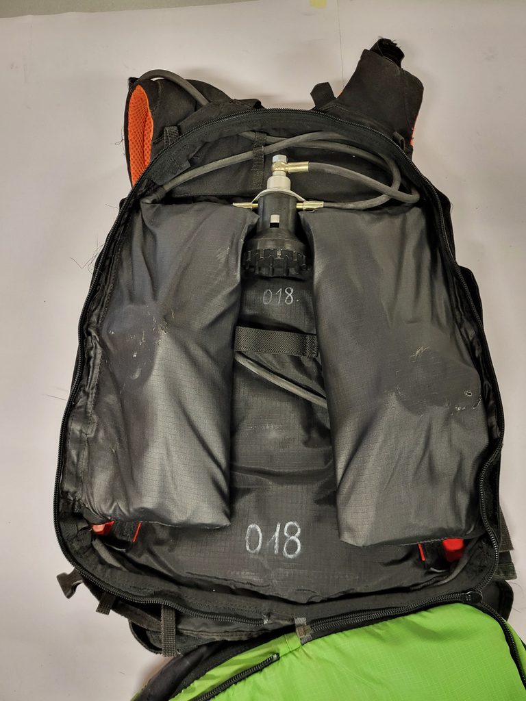 Lavinový batoh z půjčovny nese známky používání, avšak je plně funkční a byl pravidelně servisovaný.