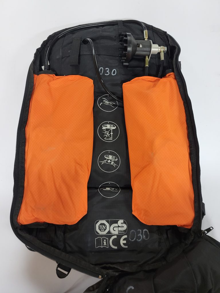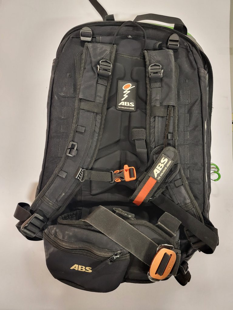 Lavinový batoh z půjčovny nese známky používání, avšak je plně funkční a byl pravidelně servisovaný. Velikost zad S.