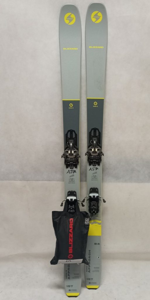 Skialpové lyže z naší půjčovny Blizzard Zero G 157 cm, šířka pod patou 84mm, vč. originálních pásů pásů a vázání marker alpinist, vše v dobrém stavu viz. foto.