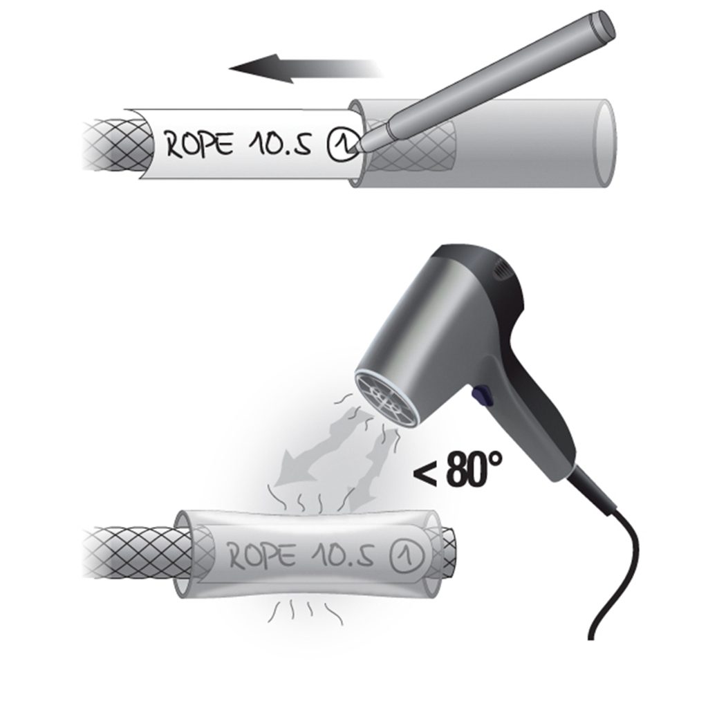Rope End Kit je sada pro označování konců lan. Sada obsahuje štítky pro označení konce a smršťovací krytku. Toto označení je velice odolné proti zbroušení a je voděodolné.