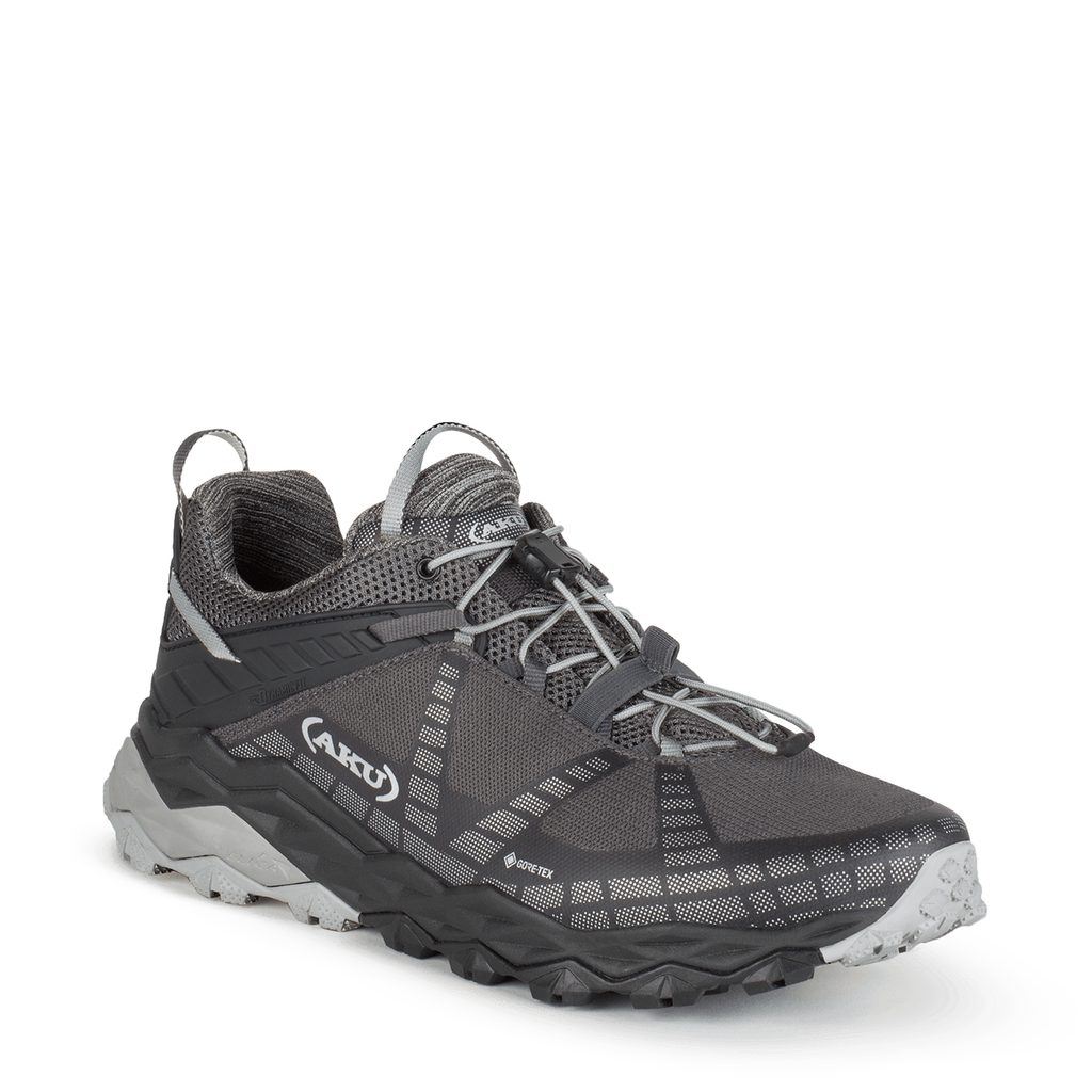 Pánské turistické boty Aku Flyrock Gtx jsou rychlé, ideální pro dynamické aktivity. Vhodné pro dobrodružství v terénu, kde je vyžadována trakce, ochrana a vysoké odpružení.