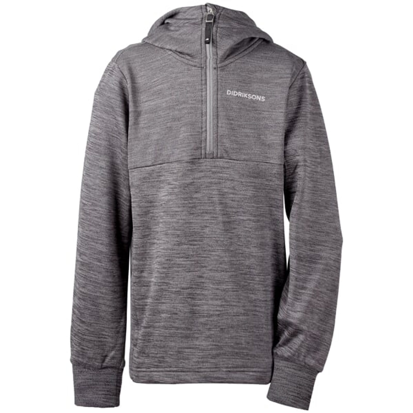 Juniorská mikina s kapucí krátkým zipem u krku.