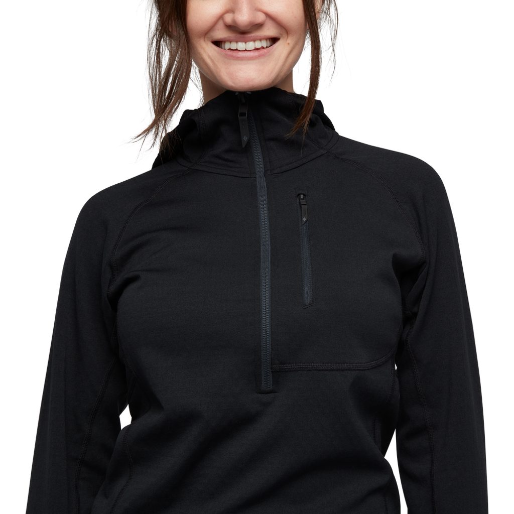 Dámská mikina Coefficient QZ Hoody se hodí jako střední vrstva pro cokoli od lyžařských túr po alpské výstupy, je vybavena fleecem Polartec® Power Dry®.