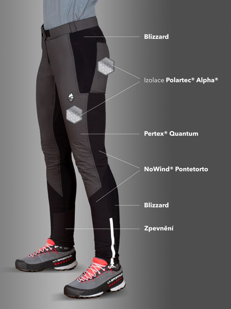 Jedinečné dámské kalhoty do chladnějších podmínek, důmyslně zkombinované ze čtyř materiálů pro maximální komfort a pohodu.