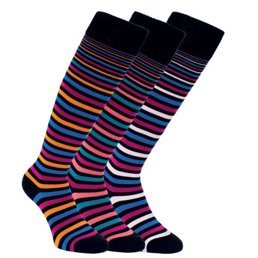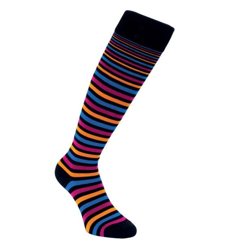 Barevné dámské pruhované bambusové elastické podkolenky v příjemných podzimních barvách.