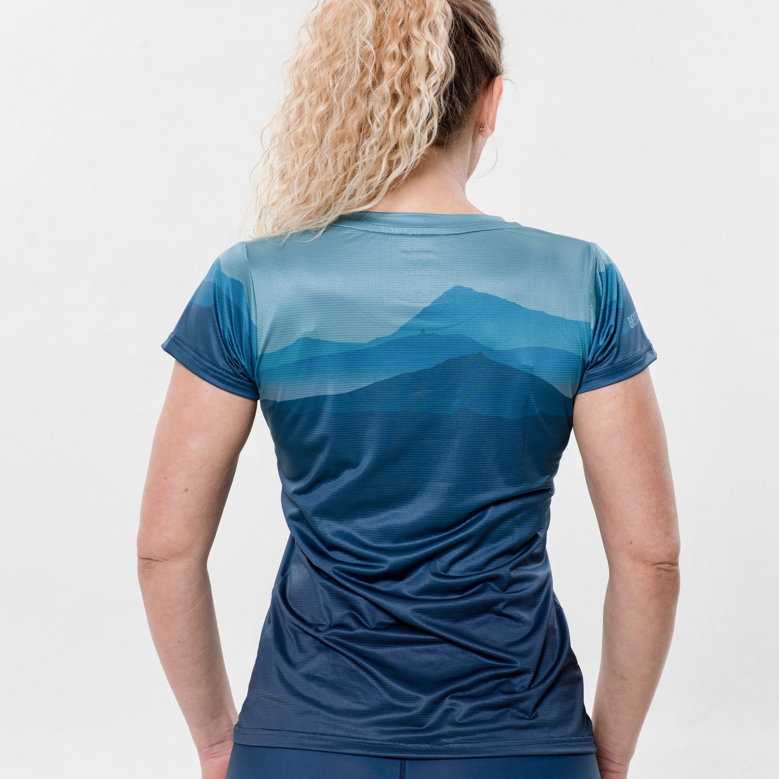 Dámské sportovní tričko se siluetami našich krásných hor v tajemných barvách se stane originálním kouskem ve Vašem šatníku. Vyrobeno z italského funkčního materiálu, který je jemný na omak, elastický, prodyšný a rychleschnoucí. Materiál má jemně lesklý nádech, který dodává oblečení luxusní vzhled.