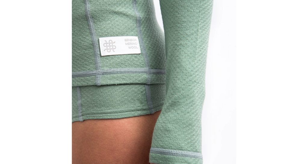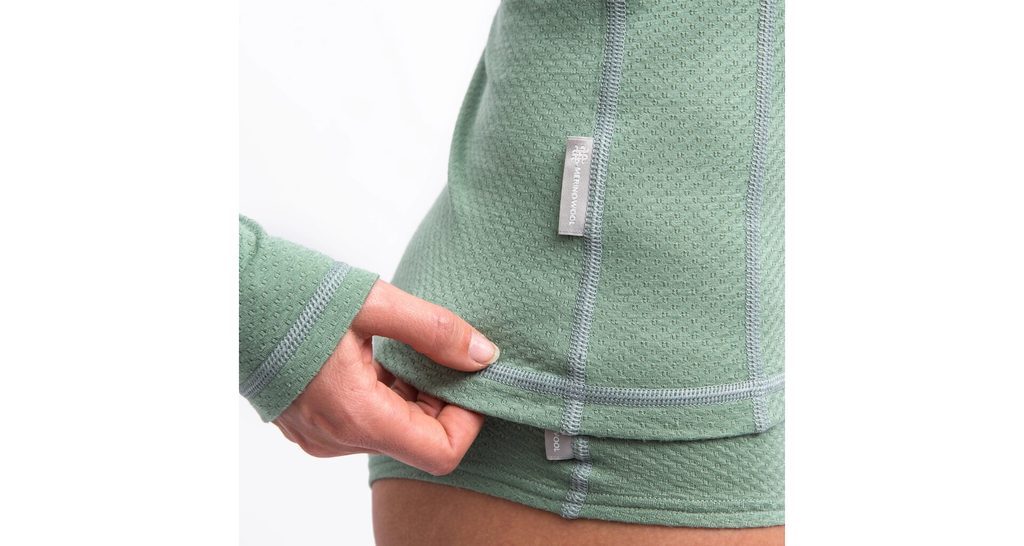 Dámské tričko s dlouhým rukávem vyrobené z úpletu unikátní konstrukce kombinující polyester na vnitřní straně a vysoce kvalitní Merino vlnu z Nového Zélandu.