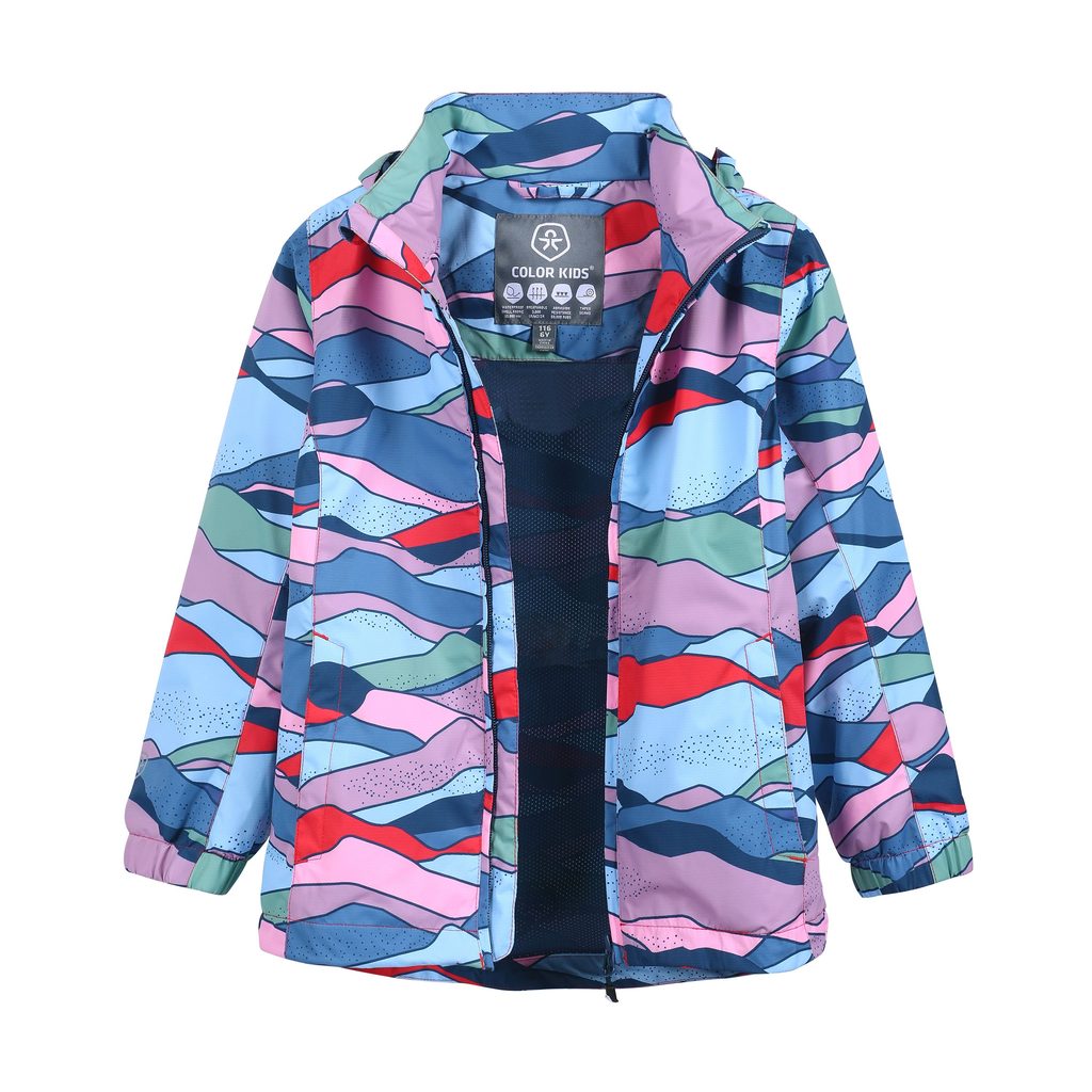 Dětská bunda z lehkého materiálu s celoplošným potiskem. Větru a vodě odolná.