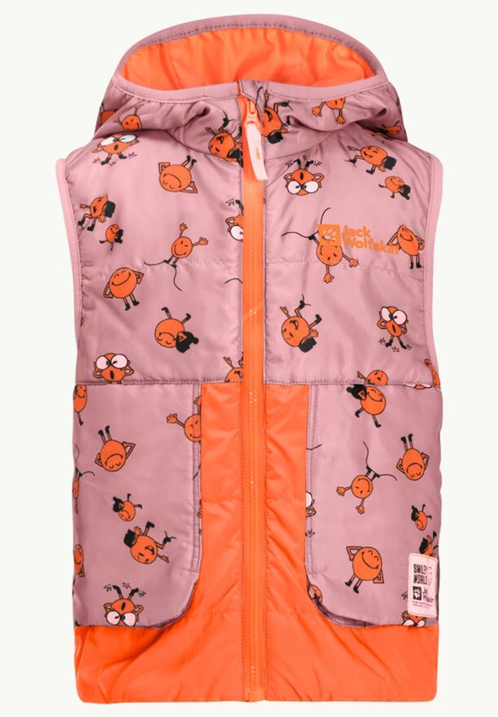 VESTA SMILEYWORLD ALL OVER PRINT bude oblíbená po celé jaro a léto. Tato dětská vesta je ideální pro chladné táboráky na pláži nebo ranní túry. Vnější vrstva z tkaniny TEXASHIELD PRO je voděodolná, pevná kapuce a výplň TEXATHERM CORE izoluje a chrání před větrem.