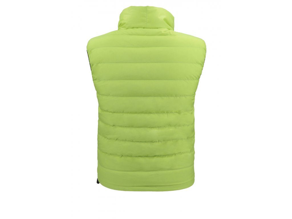 Mezi funkční doplňky patří spodní stahování vesty pro lepší ochranu proti větru a dvě postranní kapsy na zip. Součástí je pytlík na sbalení celé bundy.