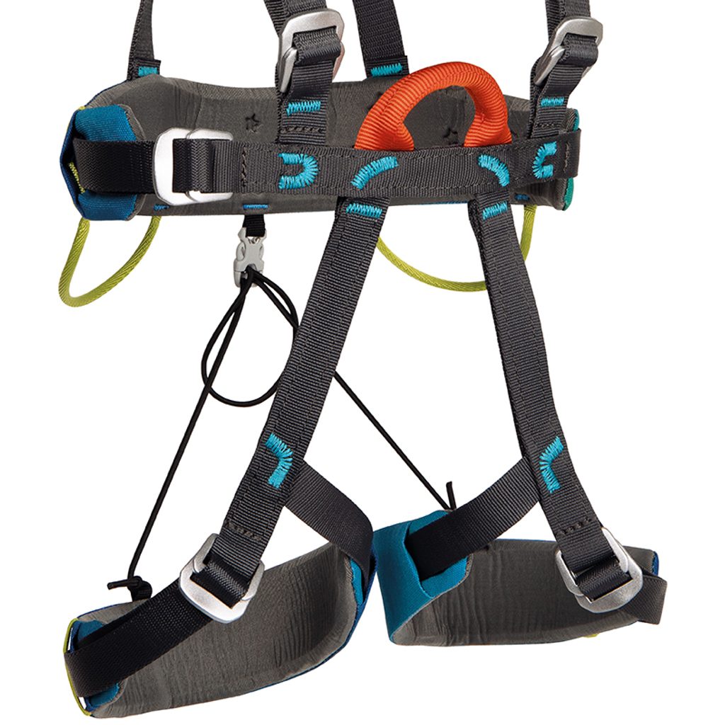 Celotělový úvazek VertiKid pro děti do 40 kg s 5 nastavovacími automaticky uzamykatelnými přezkami, vhodný na sklaní lezení i lezení na umělých lezeckých stěnách.