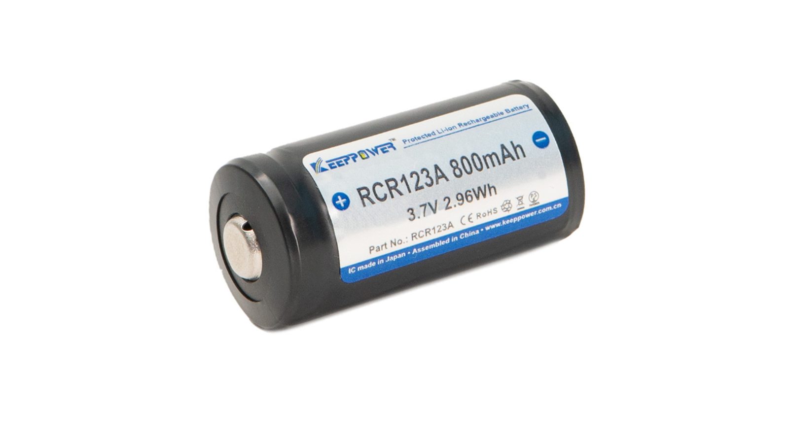 Nabíjecí baterie Keeppower RCR123A 800 mAh (16340) s ochranou (protected) je založena na lithium iontové technologii. Li-ion technologie dává jeden z nejlepších poměrů množství uchované energie k váze článku. Baterie nemají paměťový efekt a samovybíjení je minimální.