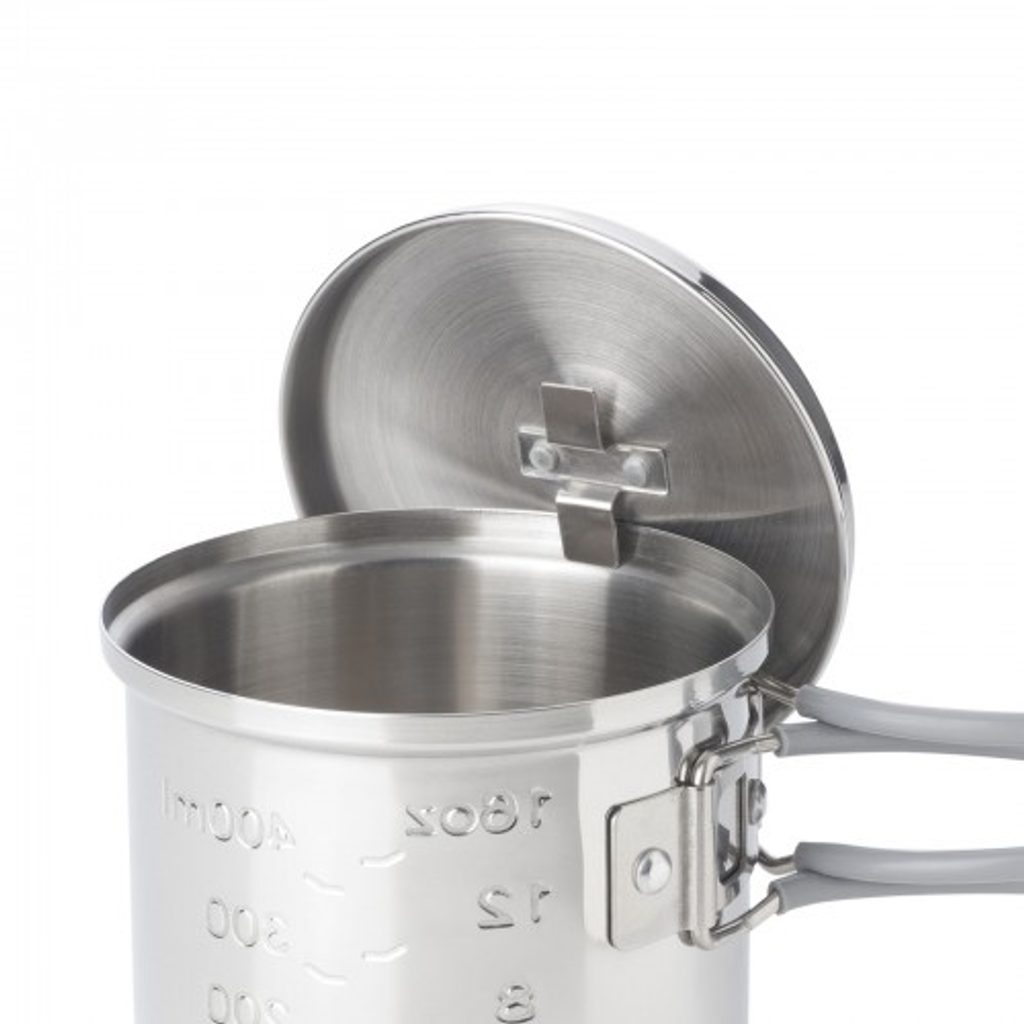 Hrnec vyrobený z vysoce kvalitní nerezové oceli, který má měrku pro přesné měření tekutin. Ražené stupnice jsou trvanlivé, odolné proti oděru a vysokým teplotám. Zůstanou viditelné po celou dobu používání. Sklopné rukojeti z nerezové oceli pro pohodlnější balení včetně tepelné izolace proti popálení.