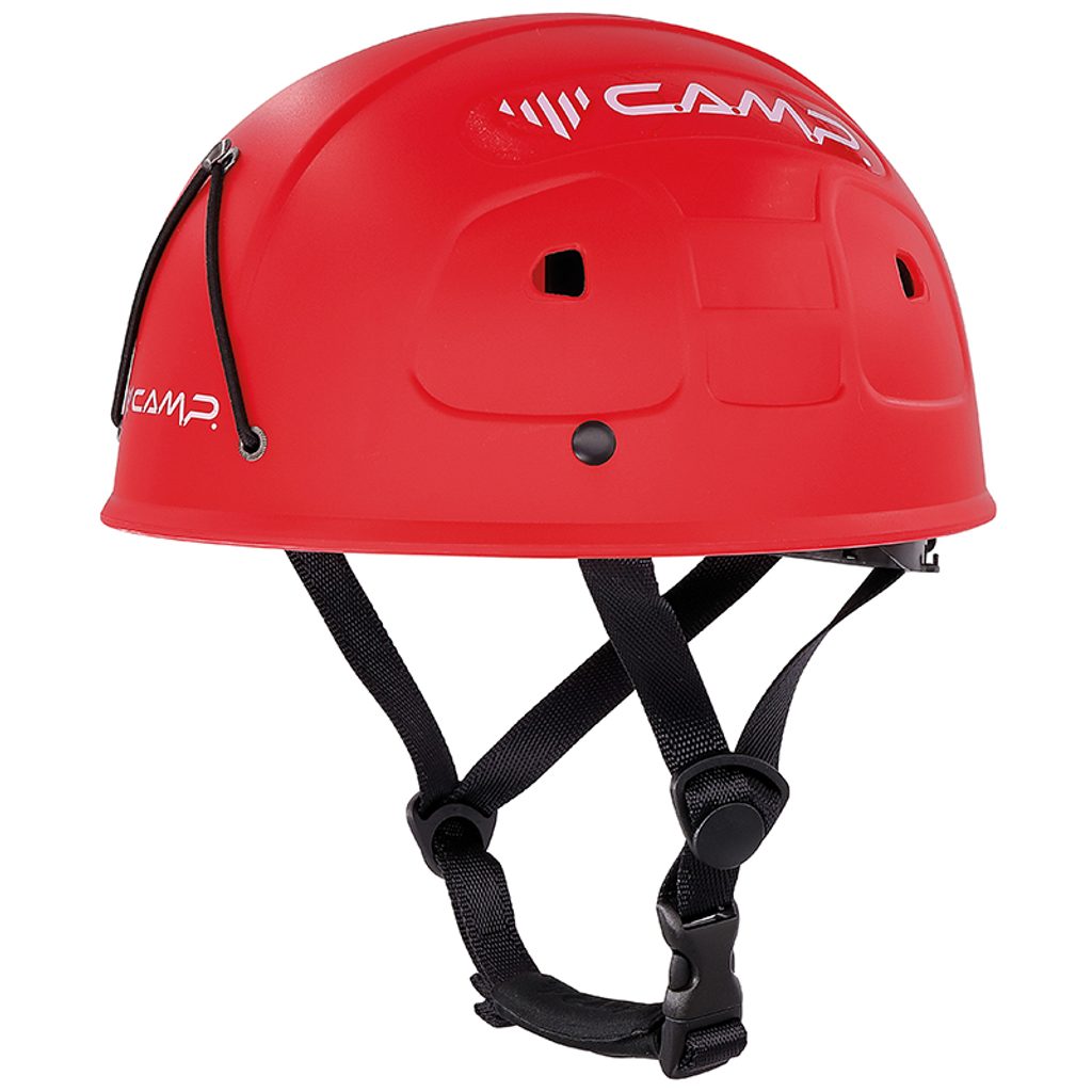 Ferratový komplet firmy Camp, složený z tlumiče Kinetic, úvazku Topaz 2 a přilby Rockstar.