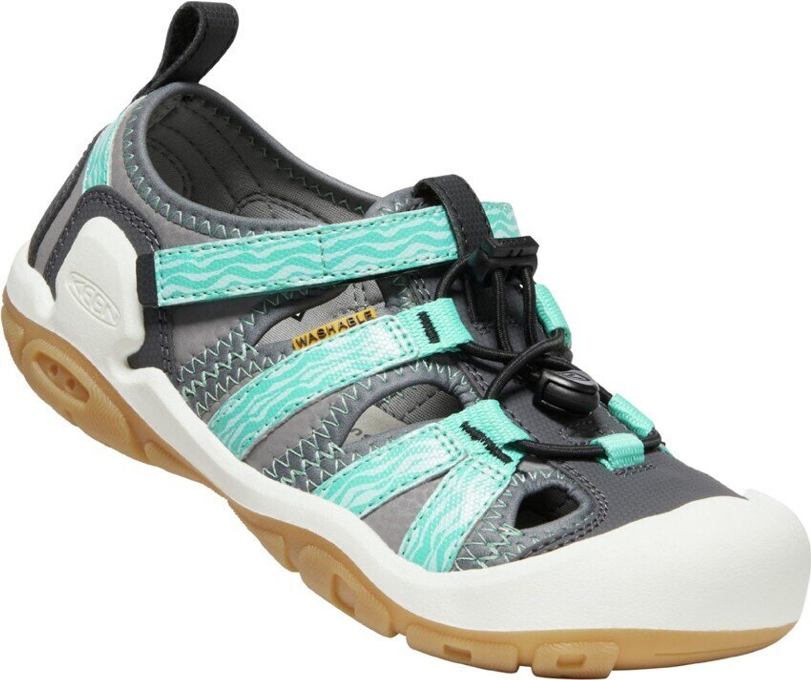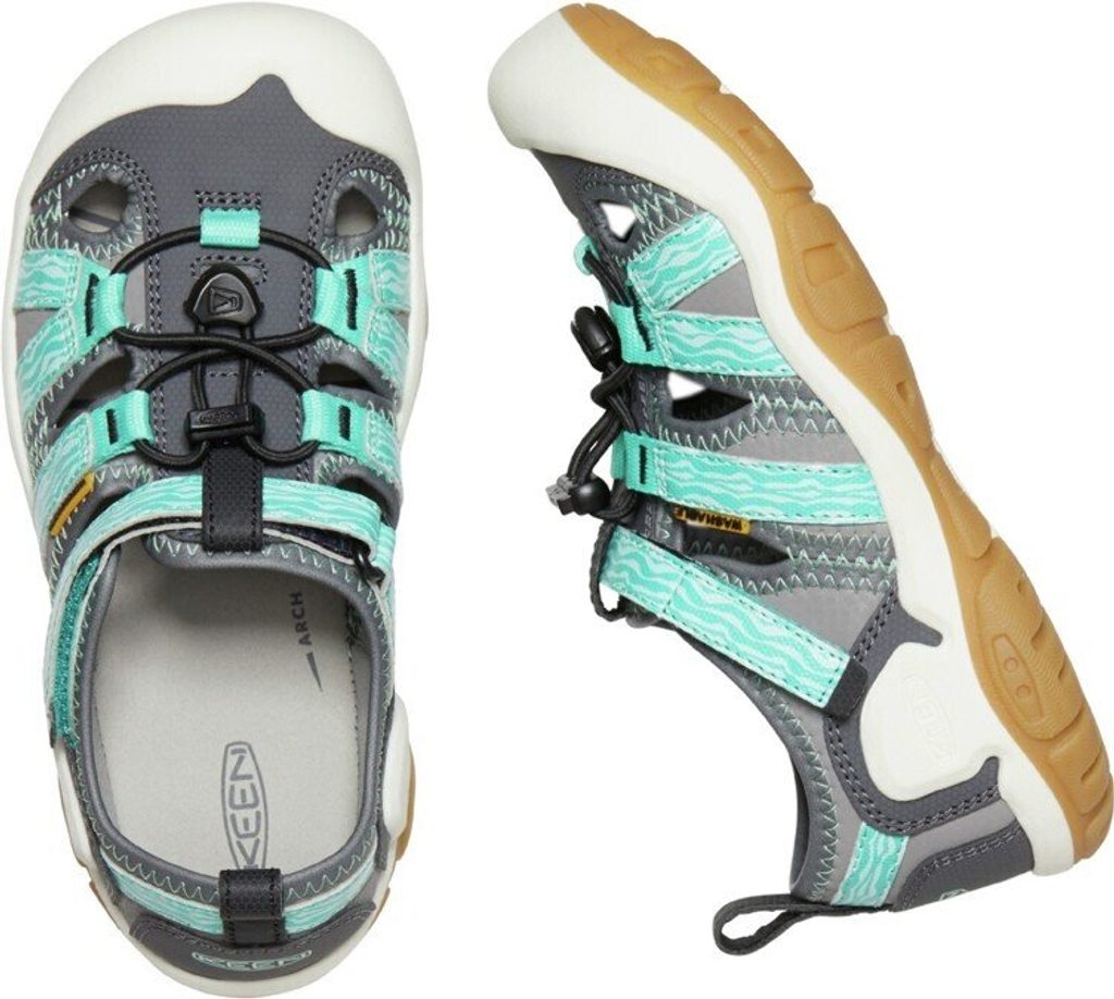 Svršek z pevné nylonové tkaniny doplňuje rychleschnoucí podšívka. Díky pružnému Lace-lock bungee systému šněrování se sandál snadno nazouvá i vyzouvá. Přidaný pásek se suchým zipem umožňuje dokonalé obepnutí dětské nohy v botě.