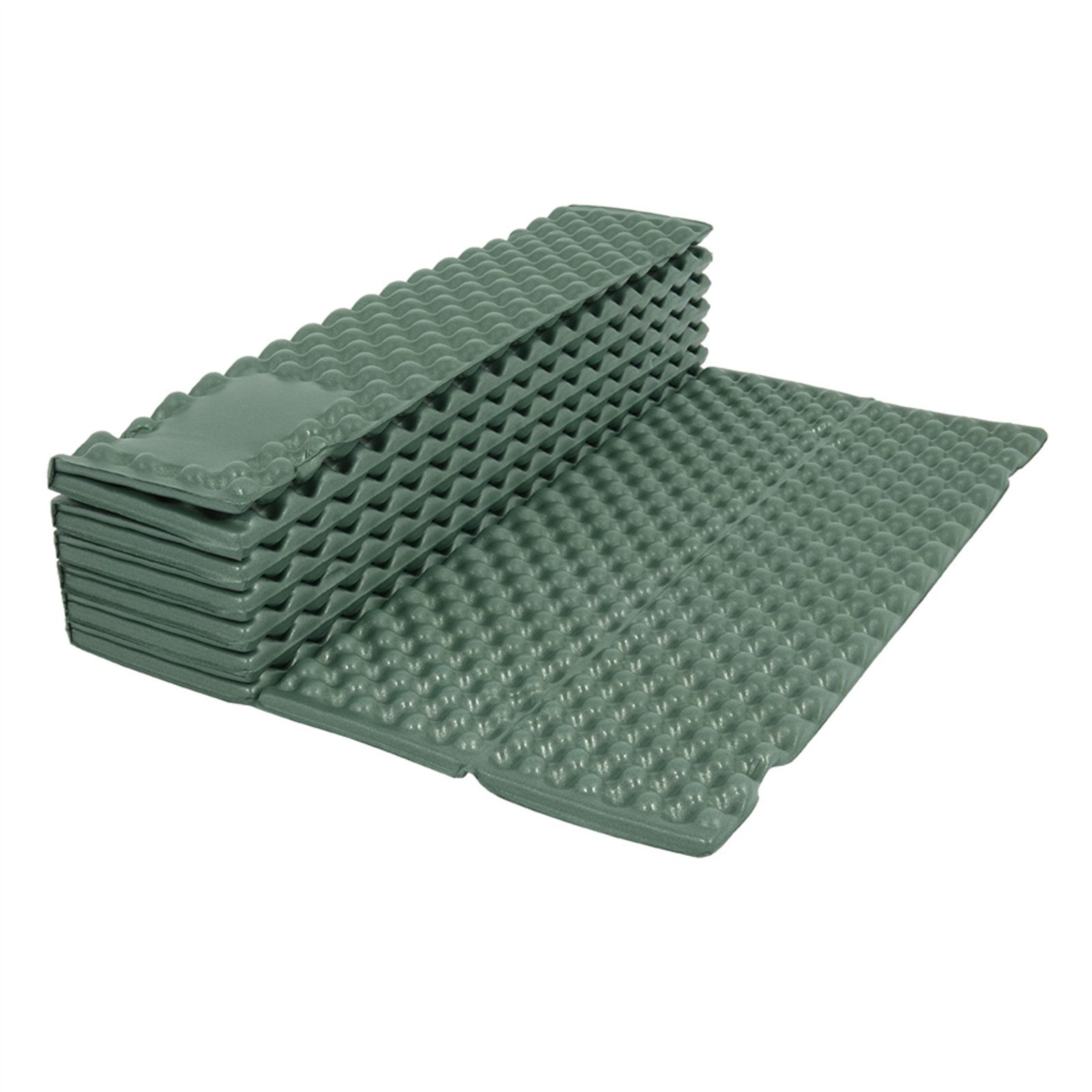 Skládaná karimatka s profilovaným povrchem v zeleném provedení.