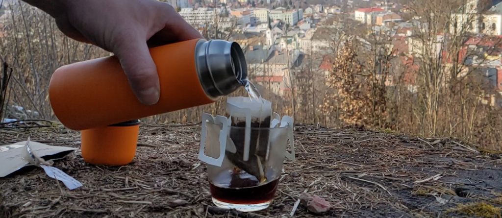 Papírový filtr je v přírodě rozložitelný, takže ho můžete volně zahrabat. Navíc káva je jedním z nejlepších přírodních hnojiv! Zbyde vám pouze vrchní obal, který rozložitelný není, takže ho musíte vyhodit někde v civilizaci. Naštěstí neváží téměř nic.