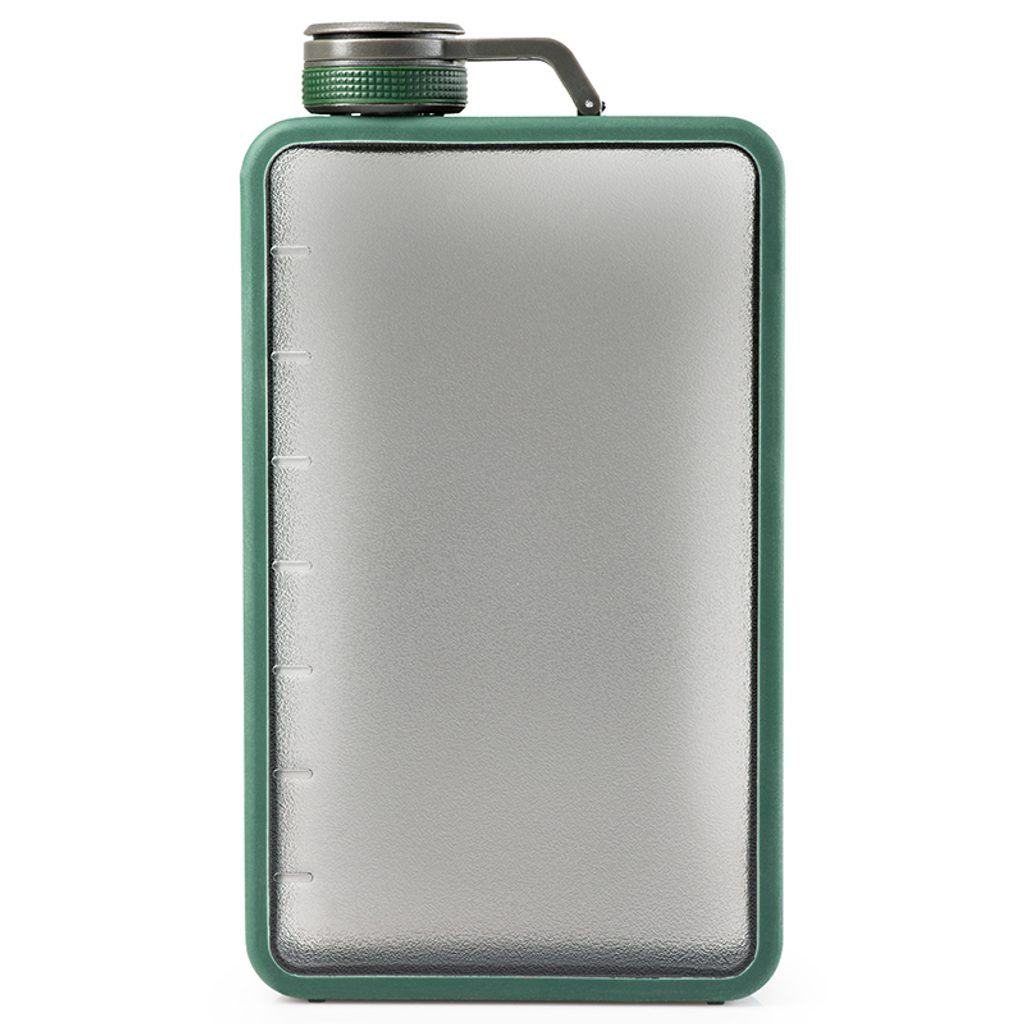 Boulder Flask je stylová 475 ml průhledná placatka z velmi odolného plastu a šroubovacím uzávěrem. Obvodový silikon těla zaručuje pevné a bezpečné uchopení při manipulaci. Díky širokému hrdlu se placatka jednoduše plní, vymývá a hlavně se z ní komfortně pije. Dalším doplňkem, který oceníte zejména v zimě je pogumovaný obvod uzávěru, pomocí kterého snadno placatku otevřete i v rukavici. Průhledný design samozřejmě nese výhody v přehledu stavu obsahu při plnění i jeho následném ubývání.