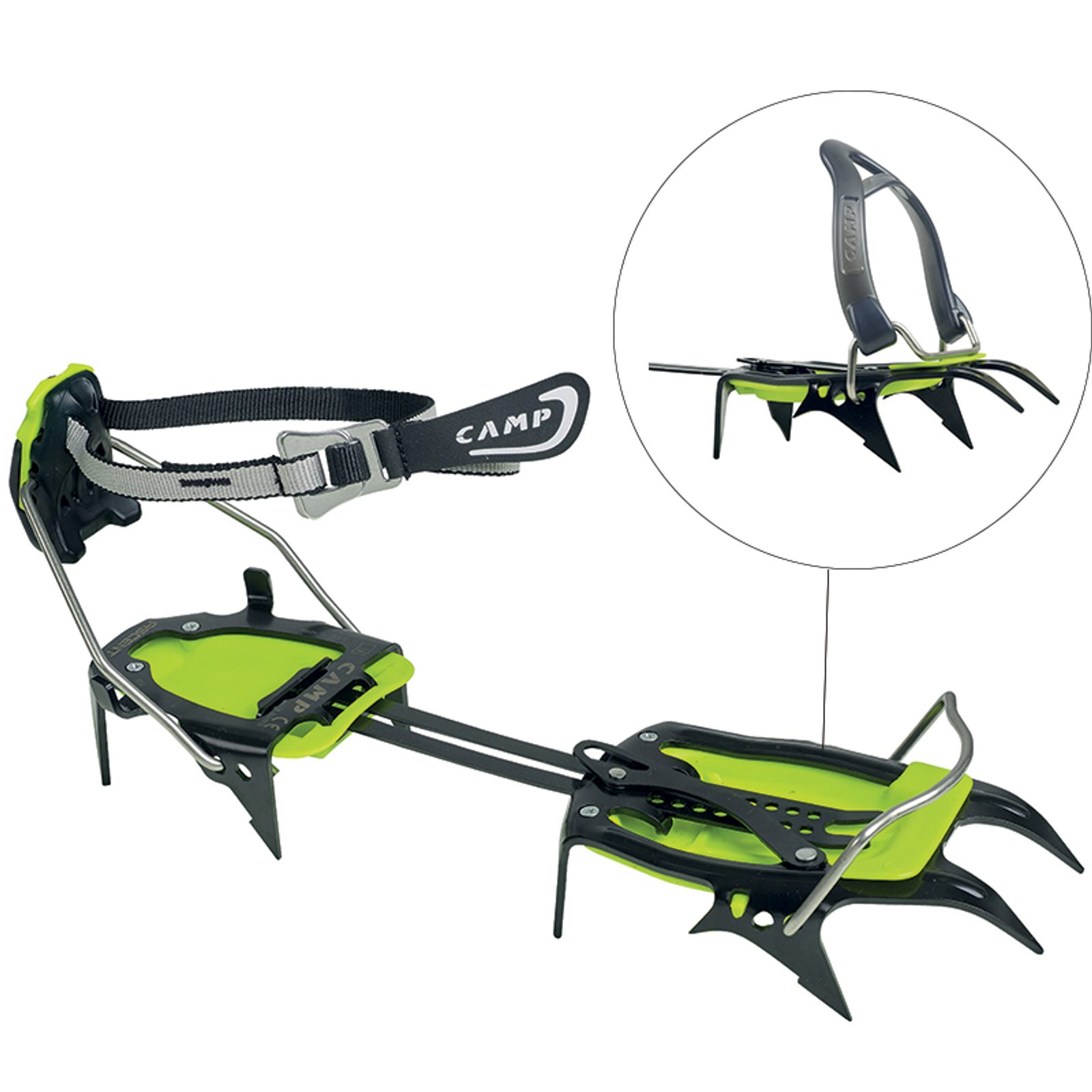 Lehké ocelové mačky Camp Ascent jsou 10-ti hroté mačky pasující na většinu horolezeckých bot. Nastavení velikosti 34-48 (EUR).