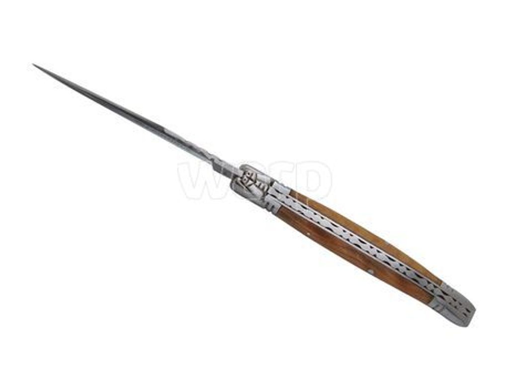 Tradiční odolný kapesní nůž s propracovanou rukojetí z olivového dřeva, který zaujme svým designem.