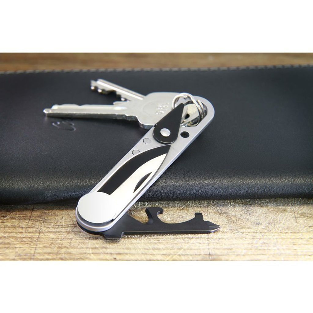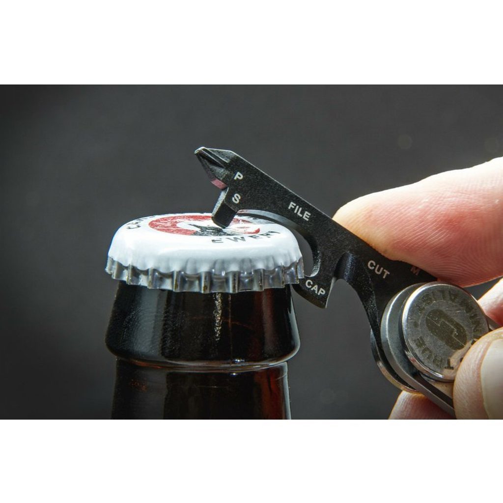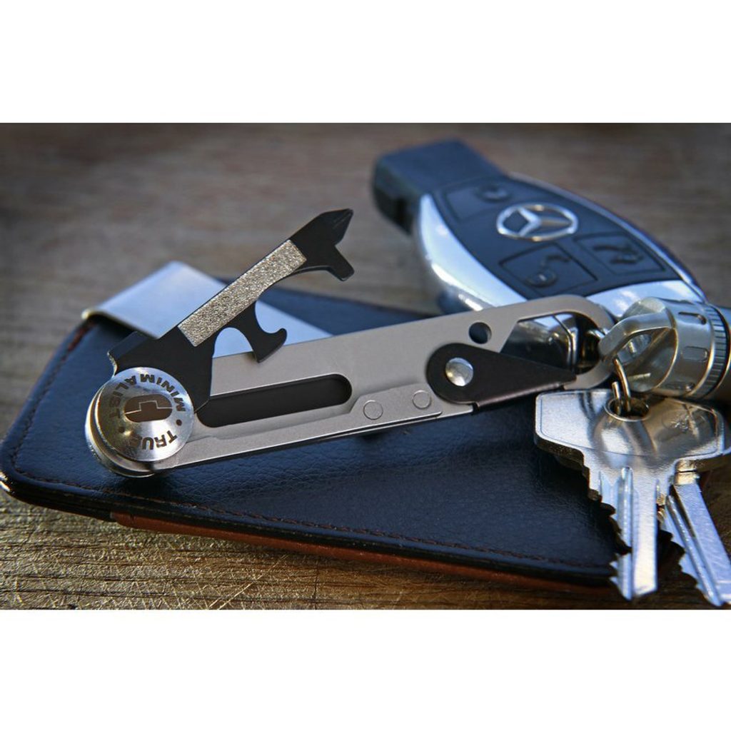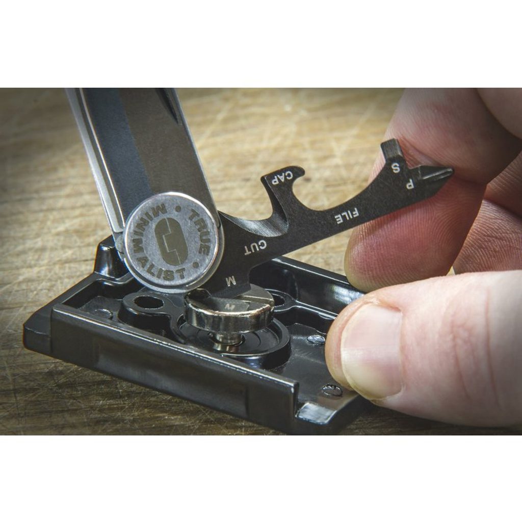 Multitool Minimalist od britské firmy True Utility je určen těm, kteří chtějí nosit po kapsách skutečně jen minimum. Lehký a tenký kapesní multitool z nerezové oceli, potažené vrstvou černého titanu, nabízí 7 funkcí - vedle zavíracího nože má křížový šroubovák, malý a velký plochý šroubovák, otvírák na lahve, pilník a řezač drátu. Pomocí karabinky ho můžete připnout ke klíčům nebo k batohu.