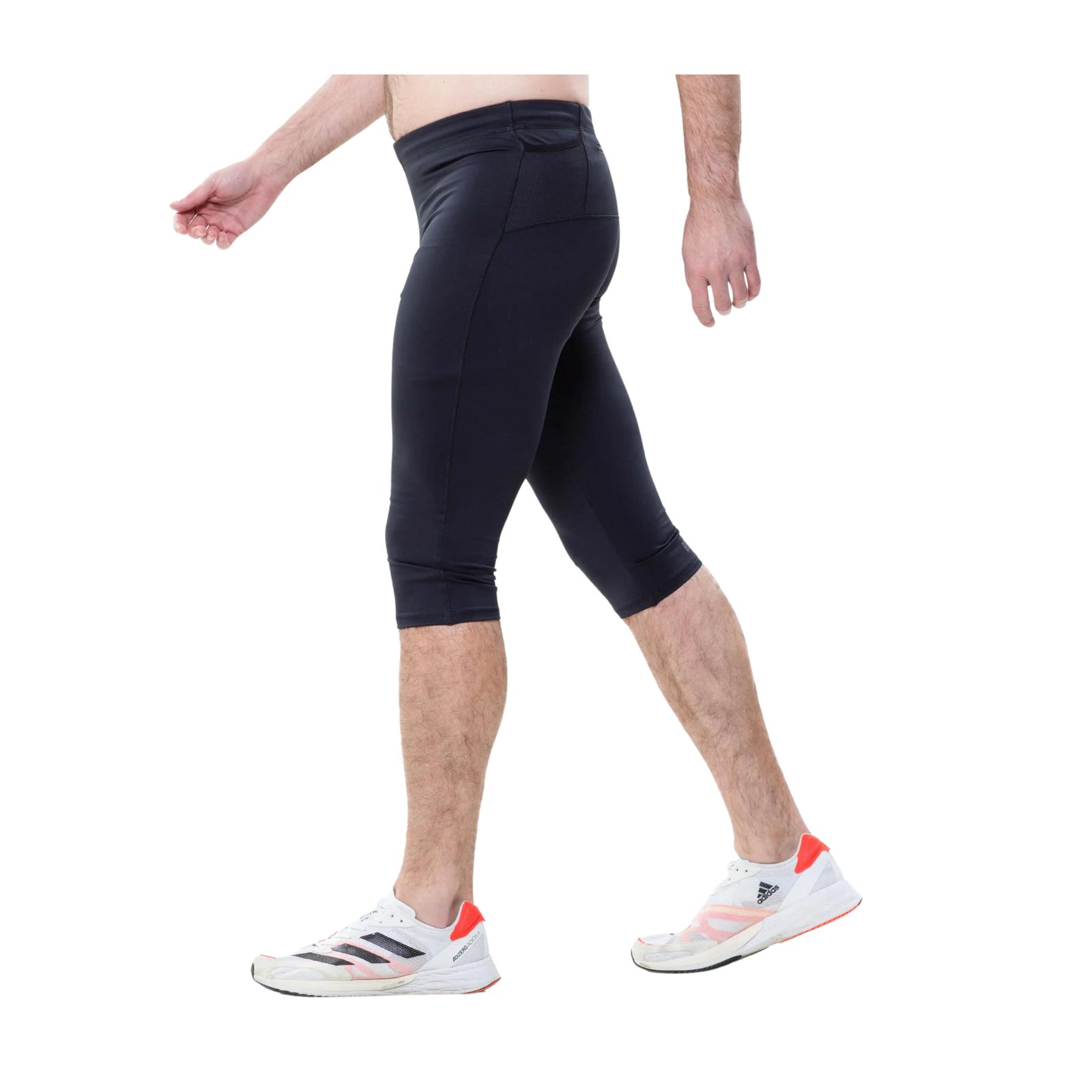 Pánské sportovní legíny v 3/4 délce pro jakoukoli sportovní aktivitu. 3 kapsičky v zadní části pasu, gumička a tkanička v pase.