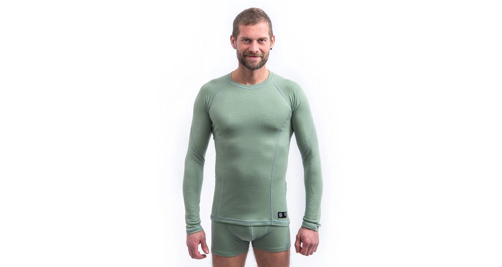 Tričko s dlouhým rukávem vyrobené z úpletu unikátní konstrukce kombinující polyester na vnitřní straně a vysoce kvalitní Merino vlnu z Nového Zélandu.