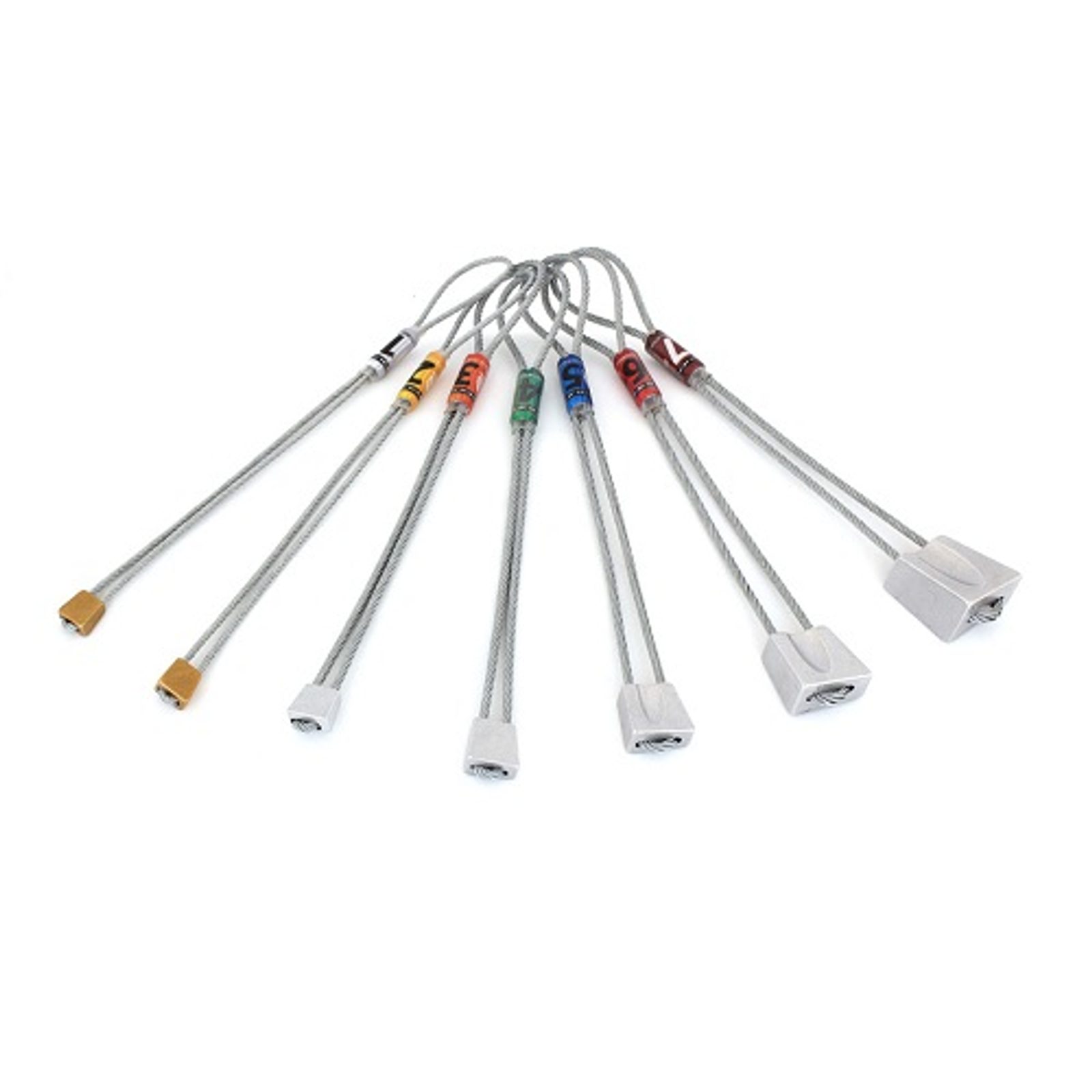 Vklíněnec Kouba Top Top s pevnostním ocelovým lankem. Jedna strana je asymetrická (zkosená). Díky tomu lze tento vklíněnec založit do různých spár (velikosti spáry od 6 mm do 29 mm). Topy lze založit do 2 různých poloh.