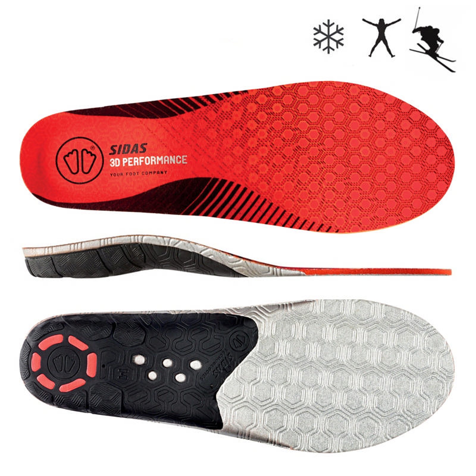 Vložky Sidas Winter 3D Performance efektivněji přenášejí pohyb nohou přes boty dál na lyže, lépe upevňují patu a podporují podélnou klenbu, tím umožňují přesnější ovládání lyží. Izolační hliníková fólie a pěna EVA pod nohama poskytují větší komfort.
