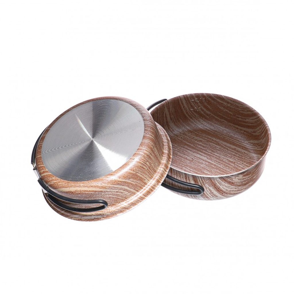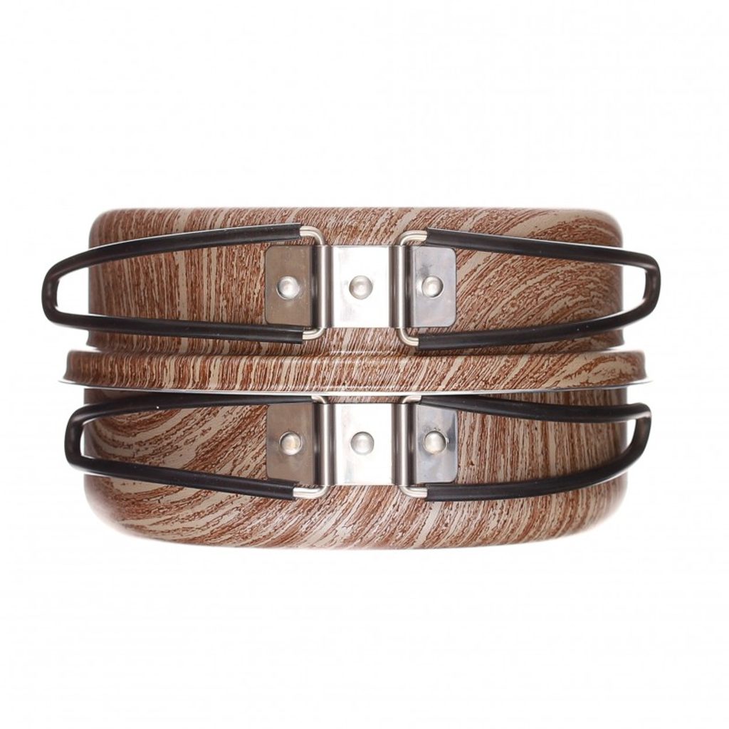 Vícevrstvý povlak s jedinečnou směsí titanových částic smíchaných do extrémně tvrdého a velmi kompaktního povrchu.Výhodou je nízká váha a atraktivní nadčasový design. Výrobek je z potravinářského hliníku a na vnitřní straně má velice tenkou vrstvu PTFE - teflonu. Hlavní a nezpochybnitelnou předností PTFE je nenáročná údržba a pohodlné vaření a snadné oplachování a čištění, ke kterému stačí klasická houbička nebo hadřík. Jídelní soupravu jsme vyrobili ve dvou barevných variantách – Wood a Stone.