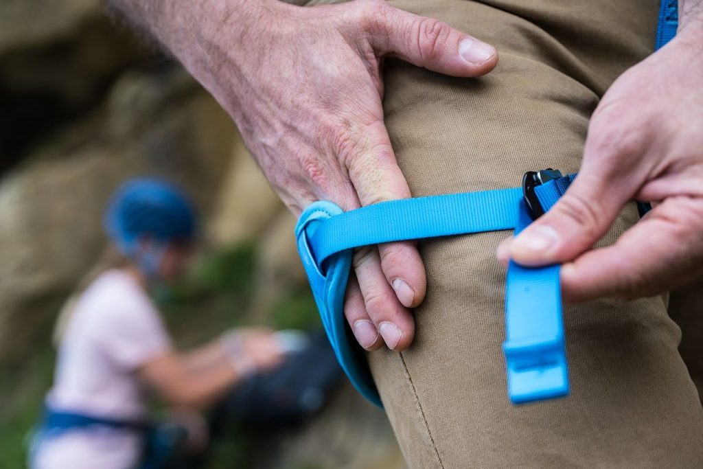 Pohodlný univerzální čtyřpřezkový horolezecký sedací úvazek.
