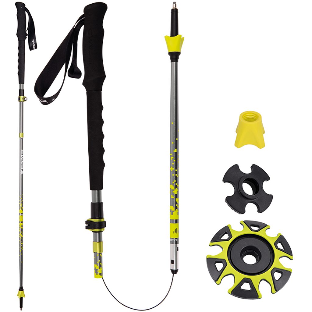 Skladné skládací trekové hole s prodlouženými měkkými madly pro náročné outdoorové výpravy. Vhodné jsou jak na turistiku, tak na trailový běh.