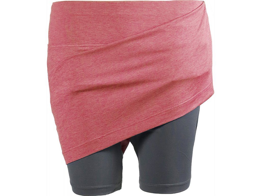 Objevte krásnou růžovou sukni Mia s vnitřnímišortkami. Je lehoučká, skladná, rychle schne a nemačká se. Vnitřní šortky jsou vysoce prodyšné, jemné a zajišťují vyšší pohodlí i během horkých dní. Ideální sukně na cestování a sportování. Sukně je dlouhá přibližně ke kolenům až lehce pod kolena (záleží na výšce postavy), ale díky dostatečně elastickému materiálu bude váš pohyb i při běhu pohodlný a bez omezení. Na bocích má dvě praktické kapsy a na zadku jednu malou kapsu třeba na telefon.