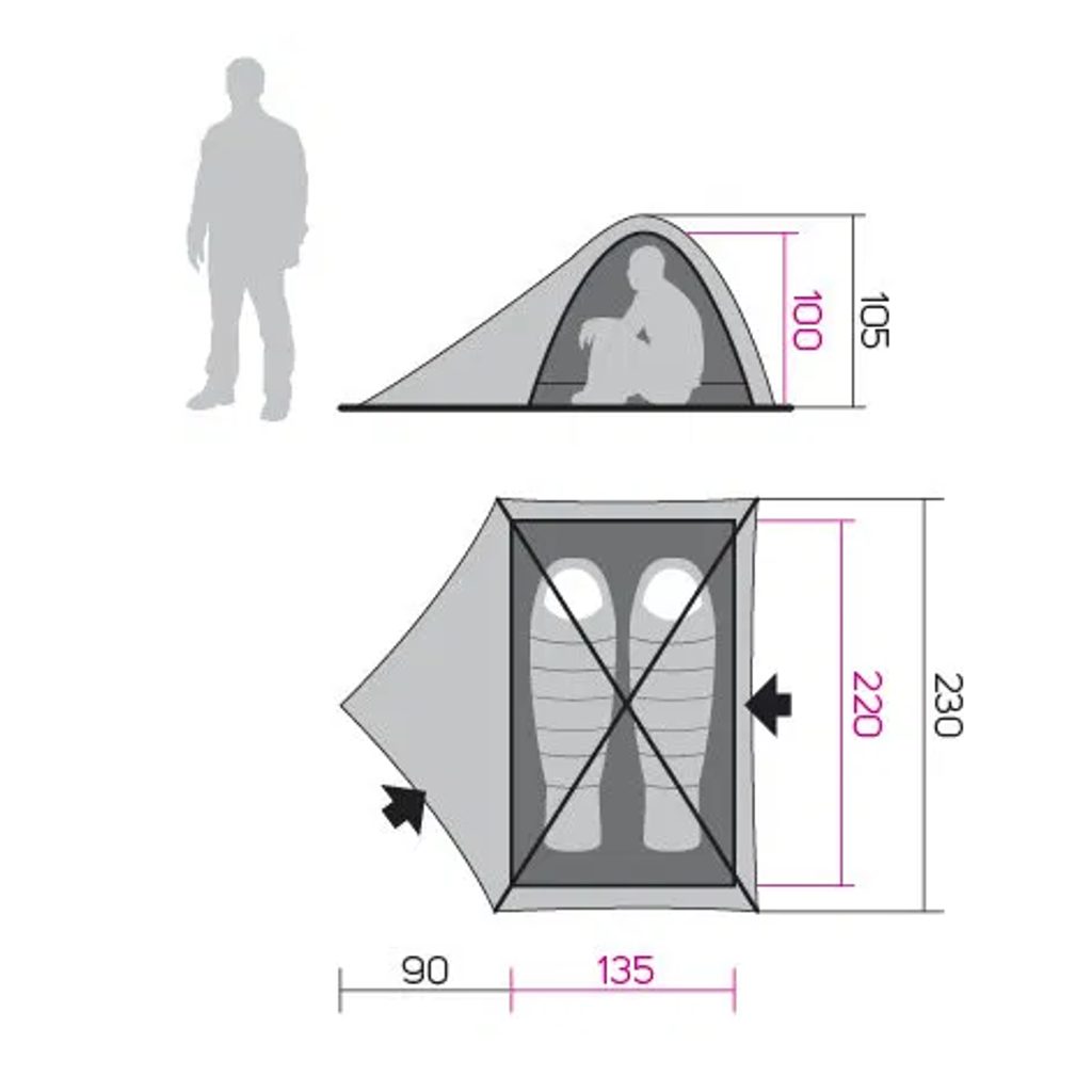 Lehký a skladný stan ideální pro treking a turistiku. Kopulovitá konstrukce se 3 duralovými pruty, které se propojí ve vrchní části duralovou spojkou. Tvar stanu poskytuje dostatek volného prostoru nad hlavou, 2 vchody dávají prostor pro variabilitu. Celorozepínací dveře s částečným odvětráním jsou sbalitelné do kapsy. Jednostranná silikonizace tropika umožňuje podlepení švů a zároveň silikonizace mimo jiné rapidně zvyšuje životnost proti UV záření.