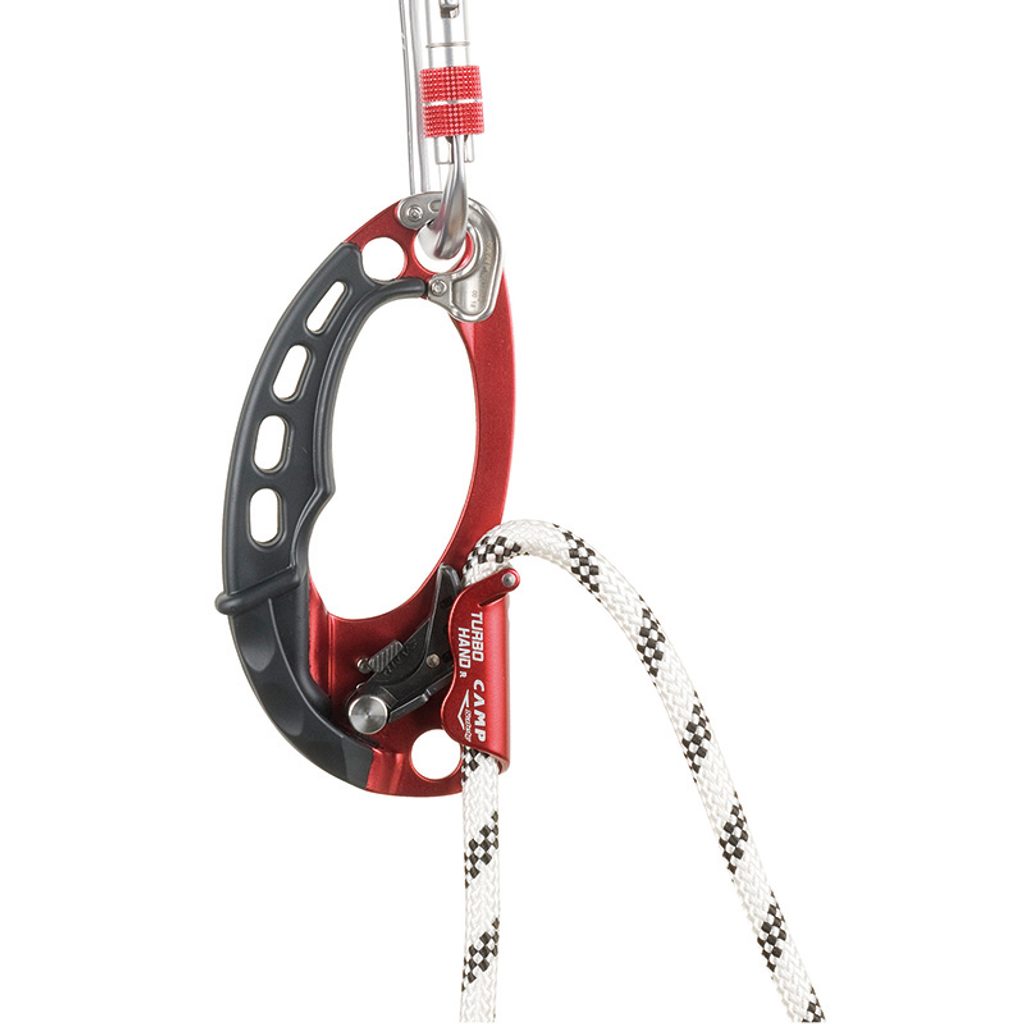 Přítomnost rolničky také umožňuje použít Turbohand Pro jako blokovací kladku při zatížení do 50kg. POZOR: Tato konfigurace neumožňuje použití blokantu pro tahání nebo zajištění osob. Ocelový pomocník Turbohand Guide je v této konfiguraci přidán na spodní část blokantu pro lepší stabilitu lana při dlouhých výstupech (je snadno odmontovatelný).
