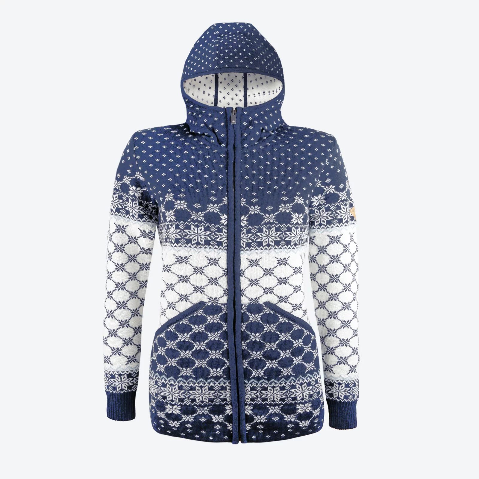 Dámský sportovní svetr v severském stylu nahradí díky svému prodlouženému střihu bundu, nebo kabátek. Prémiová příze Schoeller z komobinace čistého merina a akrylu dělá z tohoto svetru skvělé funkční oblečení pro outdoorové aktivity i běžné nošení. 2 kapsy v přední části.