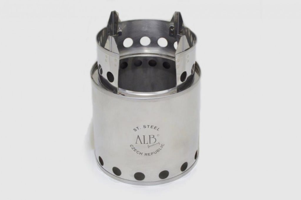Ekologický dřevo-plynový vařič typu "Bush Buddy" . Slouží k vaření v přírodě, přičemž jako palivo lze použít líh, dřevo, třísky či šišky.