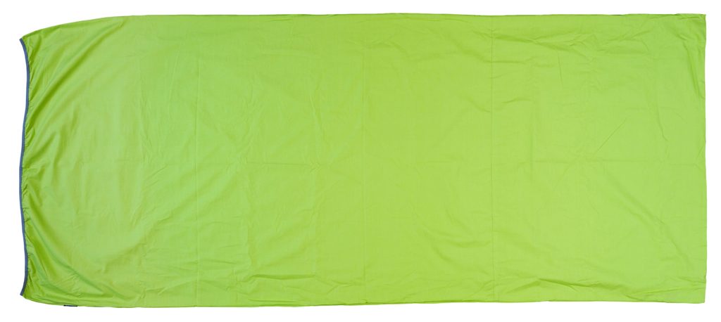 Vložka do spacího pytle z lehkého a prodyšného materiálu s vysokým podílem bavlny a přídavkem polyesteru pro odolnost a transport vlhkosti.