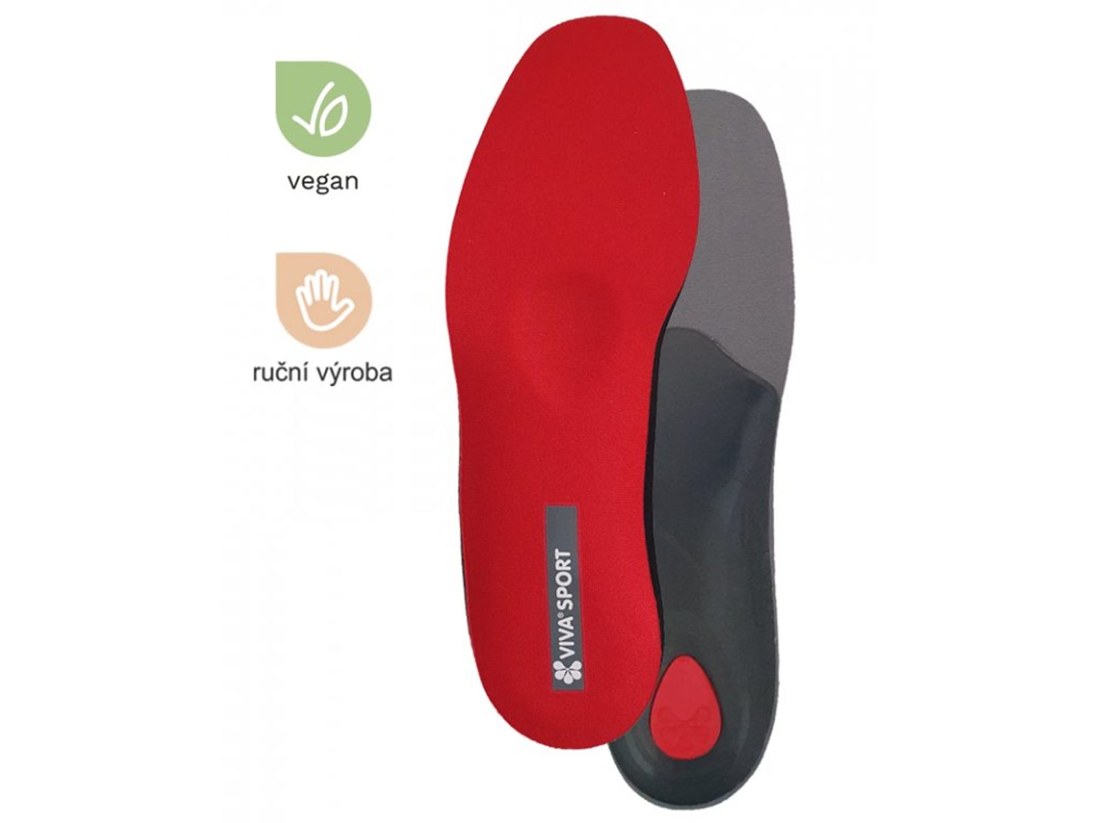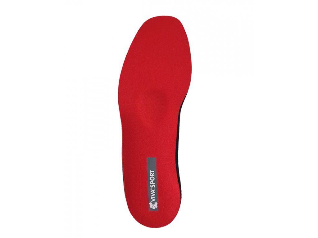 Červený povrch vložky ze speciálního materiálu, který uvolňuje napětí a únavu z nohou.